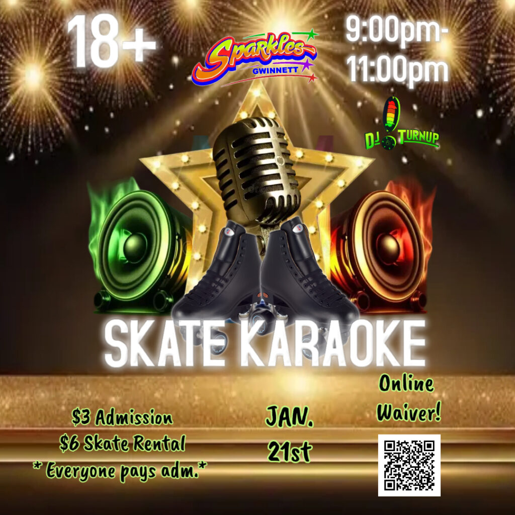 Every Sunday is Sparkles Gwinnett’s adult skate. We are open from 7:00-11:00 PM. This event is for every 18 years of age and older. Admission is $12.00; skate rental is an additional $6.00. Everyone pays to enter for this session!