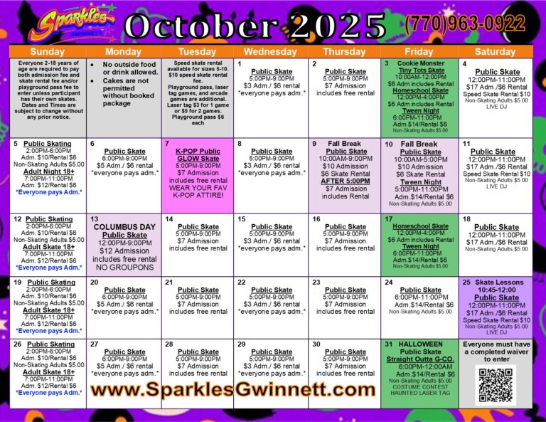 All children ages 2-18 must always pay the session’s admission fee and skate rental or playground fee to enter the facility, whether they participate or not. Playground is for children ages 2-8 only and is always $6.