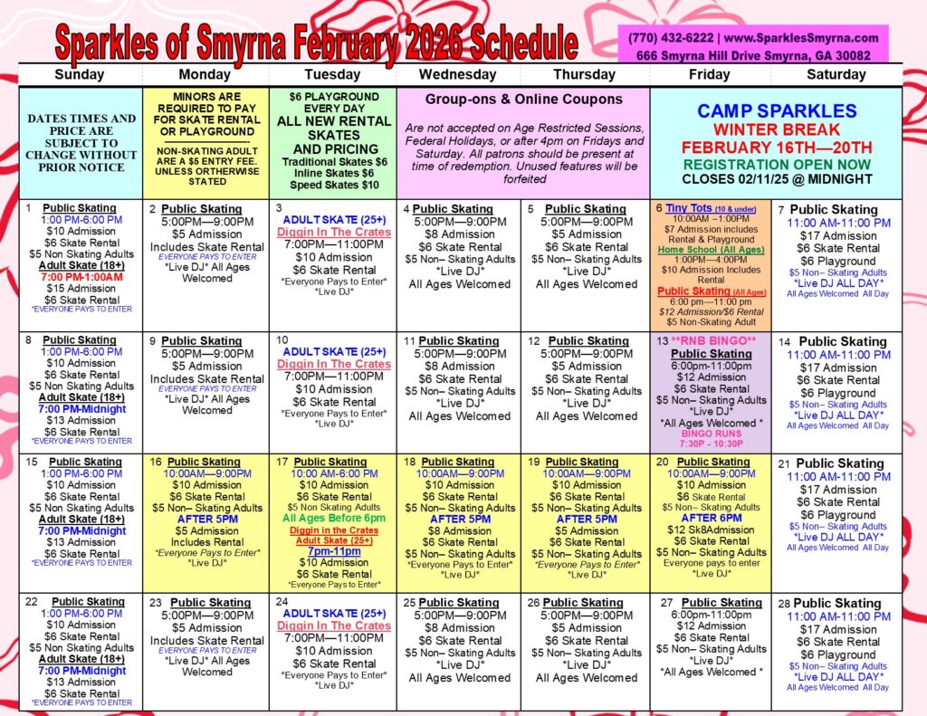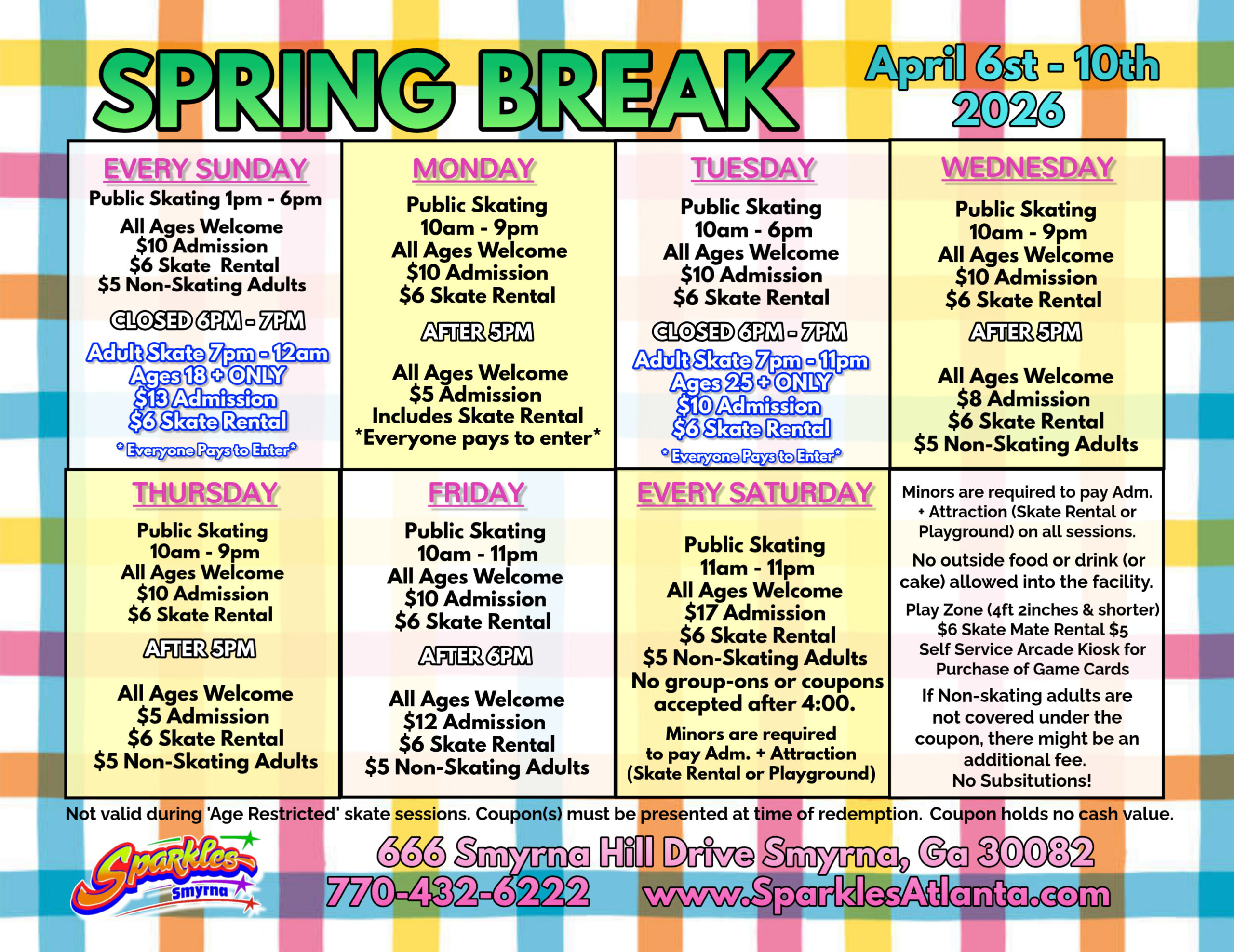 Monday - Friday #770-432-6222 | Non-skating hours unless, its a holiday, or school break , see monthly calendar for details !